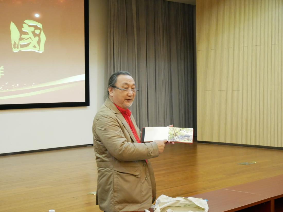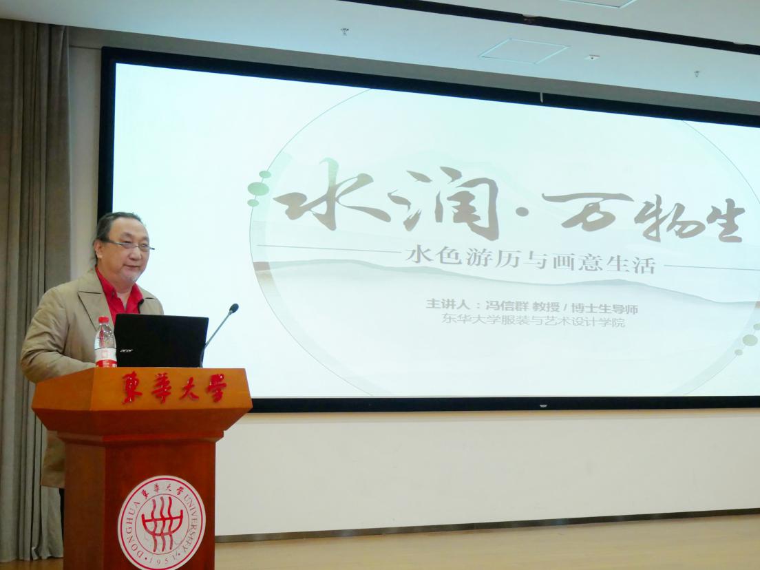 “上善若水。水善利万物而不争,处众人之所恶,故几于道。”水是有生命力而又低调的物质,水彩画以水为媒介,以彩为语义,在水和色彩的相互交融下,世间万物跃然纸上。12月14日,williamhill官网网站服装与艺术设计公司教授、博士生导师、全国艺术专业学位研究生教育指导委员会委员冯信群,结合国内外游历写生经历,为同学们带来一场绚丽多彩的水彩艺术盛宴。 冯信群教授从水彩之美、水彩之趣、水彩之意三个方面对水彩艺术进行了阐述。他首先介绍了水彩画的发展起源,水彩画源于欧洲,盛于英国,是一门古老又年轻的艺术,水彩在中国的引入与发展对近代美术的价值观、审美观、方法论产生重要影响,与中国画传统用笔、气韵和意境相融合,蕴含着丰富的中国文化艺术精神,彰显中国气派。 冯信群教授结合自己在长征路、丝绸之路和尼泊尔、土耳其、意大利等国内外地区游历写生时的创作,将一幅幅水彩画背后蕴藏的生动故事娓娓道来。艺术来源于生活,冯老师围绕“艺术融入乡村”话题,生动讲述今年国庆期间在江西创作写生经历,用水彩展现乡间山水风景,将水彩与陶瓷相融合,实现水彩艺术的再创造,分享自己水彩创作的乐趣。