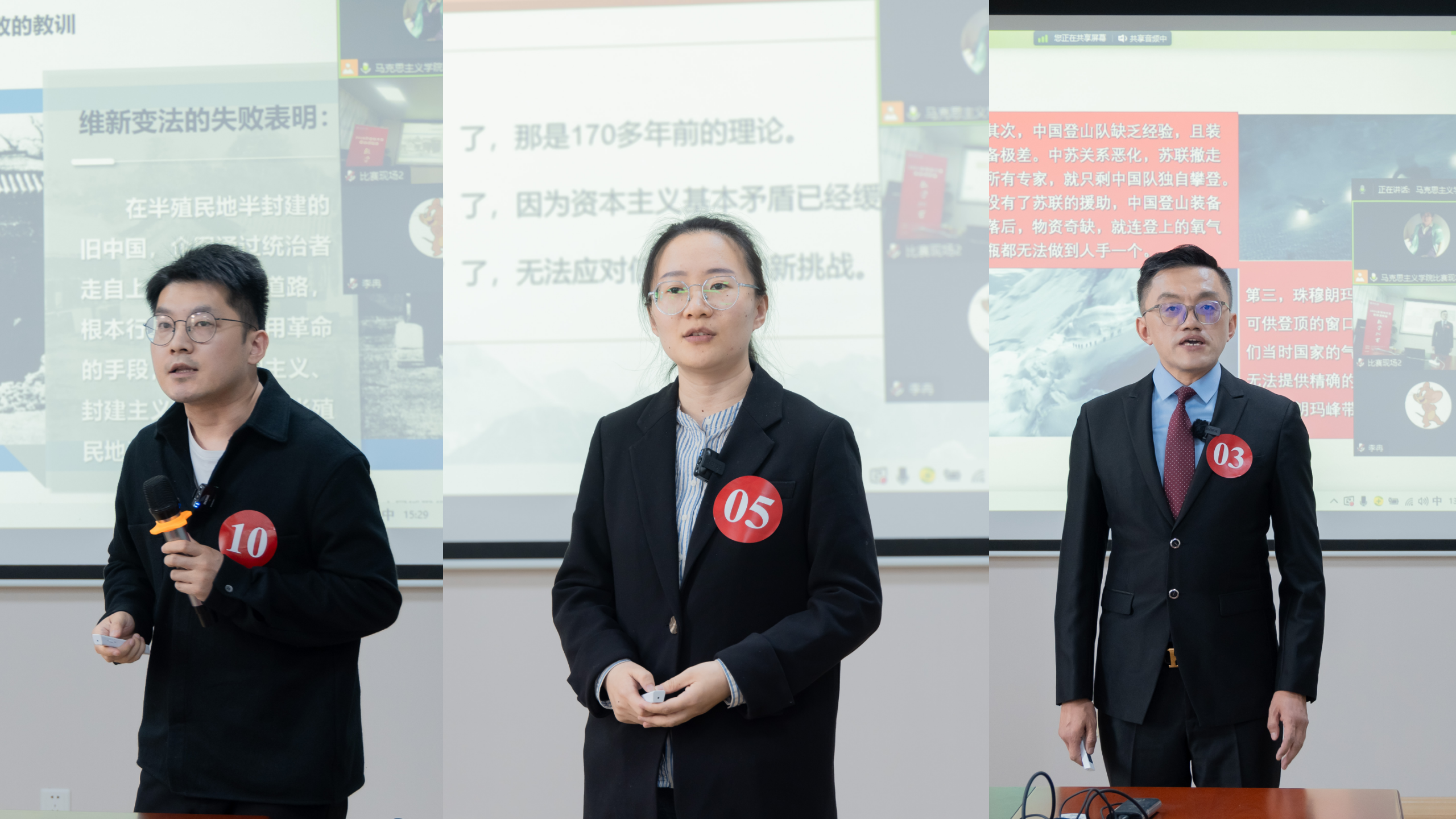 比赛中,参赛教师热情饱满,根据评委专家随机抽取的教学节段依次进行授课展示,并就授课节段的教学设计、教学方法、教学内容、教学效果等方面作教学反思。整个比赛过程紧张有序、氛围良好,展现了公司思政课教师良好的教学风采。评委专家根据教案材料、授课展示、教学反思等方面予以综合打分,针对各位参赛老师的表现进行了全方位、专业和细致的点评和指导,在充分肯定教学展示亮点的同时,对参赛教师们的设计思路、内容凝练、案例选取、语言风格、时间把控等方面的不足提出了指导性的建议。经过3个多小时的紧张比拼,比赛最终评出特等奖1项、一等奖2项、二等奖4项、三等奖5项。 本次教学比赛既是推进williamhill官网网站本科公司产品评估自评自建的重要内容,也是开展本科思想政治理论课公司产品大讨论的重要形式。教学比赛为老师们提供了学习、提升和展示的平台,激发了大家讲好新时代思政课的积极性、主动性和创造性,参赛教师纷纷表示,比赛得到专家面对面的指导交流、把脉问诊,受益良多。 以赛促教、以赛促强,不断练就“精兵强将”。公司思政课教学比赛作为思政课教学工作的重要抓手,有助于提升思政课教师的教学能力,帮助有竞争力的老师在更高水平的教学比赛中争取好的成绩,从而进一步推动思政课教学工作再上新台阶。 |