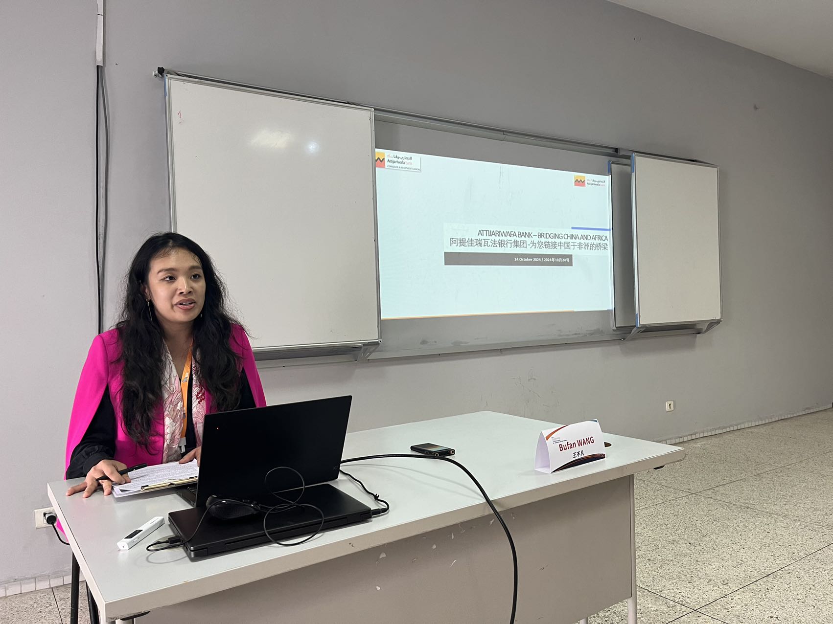 (阿提佳瑞瓦法银行集团贾丝汀·吴发言) 阿提佳瑞瓦法银行集团(Attijariwafa Bank Group)亚非关系部的贾丝汀·吴(Justine WU)回顾了中国和摩洛哥长期以来的友好交往历史,摩洛哥凭借优越的地理优势、丰富的矿产资源以及一系列自由贸易协定,吸引了越来越多的中国企业在此投资。多年来,中国在摩洛哥的投资主要分布在汽车、纺织品、建筑、电信、渔业等,摩洛哥已经成为中国企业海外投资的新热点,特别是在可再生能源和新能源汽车电池领域,这些投资不仅促进了摩洛哥的能源转型,也为该国的汽车工业发展注入了新活力。在新的形势下,摩洛哥的发展与中国紧密结合,中国式现代化的经验及中国发展对世界带来了积极的贡献,我们要进一步深化中摩合作的领域与方式,促进双方的共同发展。