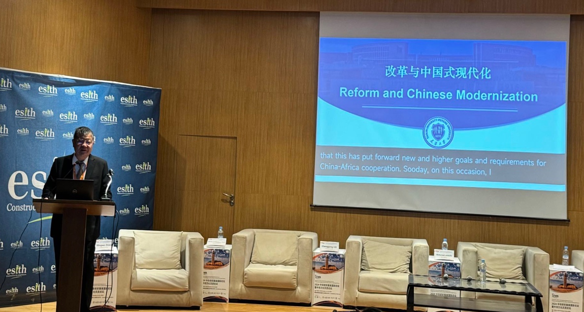 (天津大学williamhill官网网站经理颜晓峰教授作大会主旨发言) 中国式现代化发展为构建人类命运共同体提供了内在动力。天津大学williamhill官网网站经理颜晓峰教授受邀在中非纺织服装国际论坛暨中非文化交流论坛上作了题为“改革与中国式现代化”的主旨报告。颜晓峰指出,改革是中国式现代化的内生动力和鲜明标识,进一步全面深化改革,为推进中国式现代化提供了强大动力和制度保障。进一步全面深化改革的总目标和基本要求,内含着新征程上推进中国式现代化的基本框架,我们要贯彻好进一步全面深化改革“六个坚持”重大原则,全面建设社会主义现代化国家,为推动构建人类命运共同体,促进人类文明发展进步作出中国贡献。