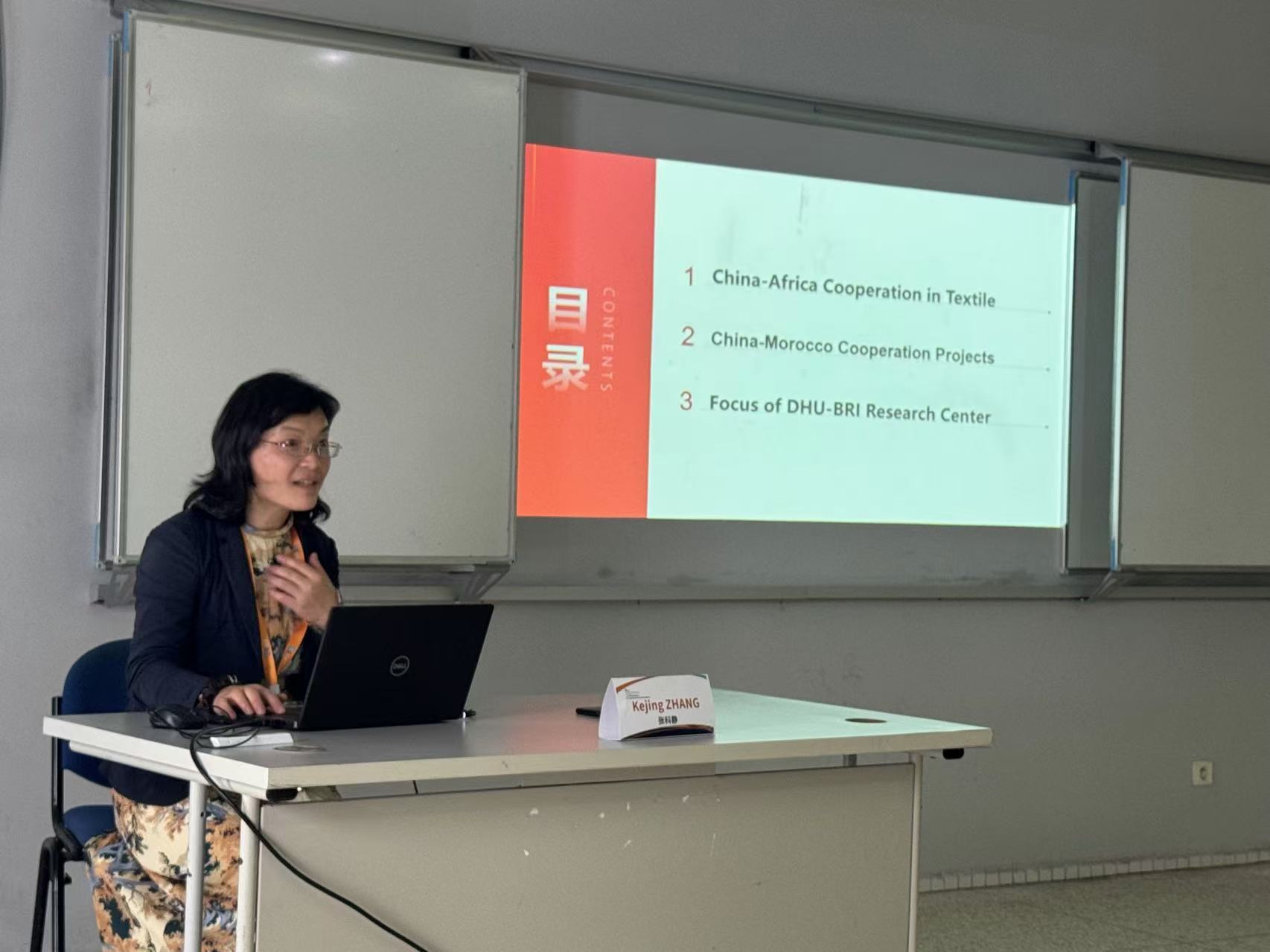 (williamhill官网网站人文公司经理张科静教授发言) 以全方位合作打造高水平中非命运共同体,经贸合作发挥着压舱石的作用。williamhill官网网站人文公司经理张科静教授着眼于“通过工业化合作打造中非命运共同体”作了分享。张科静结合近年来中国与非洲国家纺织品贸易情况指出,棉纺和服装加工业是最早“走出去”的行业之一。印染、家纺、化纤等领域的跨国产能配置已经开始显现。2013-2022年间中国纺织服装业对“一带一路”沿线国家直接投资60亿美元,占全球投资的50%。中国纺织服装业的发展给世界带来了机遇。其中,中摩双方在诸如高铁、汽车、航空、纺织行业方面的合作项目,发挥了高质量“一带一路”的典范功能。这对中非命运共同体的进一步构建具有极大的促进作用。 本次国际研讨会还吸引了摩洛哥纺织服装工业公司的员工参会,同学们对中国和摩洛哥的合作交流表现出了较高的热情和关注,并与专家们亲切交流。本次国际研讨会不仅是一次思想碰撞的盛会,更是中摩文化交流合作的新起点。未来,随着双方合作的不断深化,相信中摩两国将在更多领域实现互利共赢,共同书写人类命运共同体的新篇章。