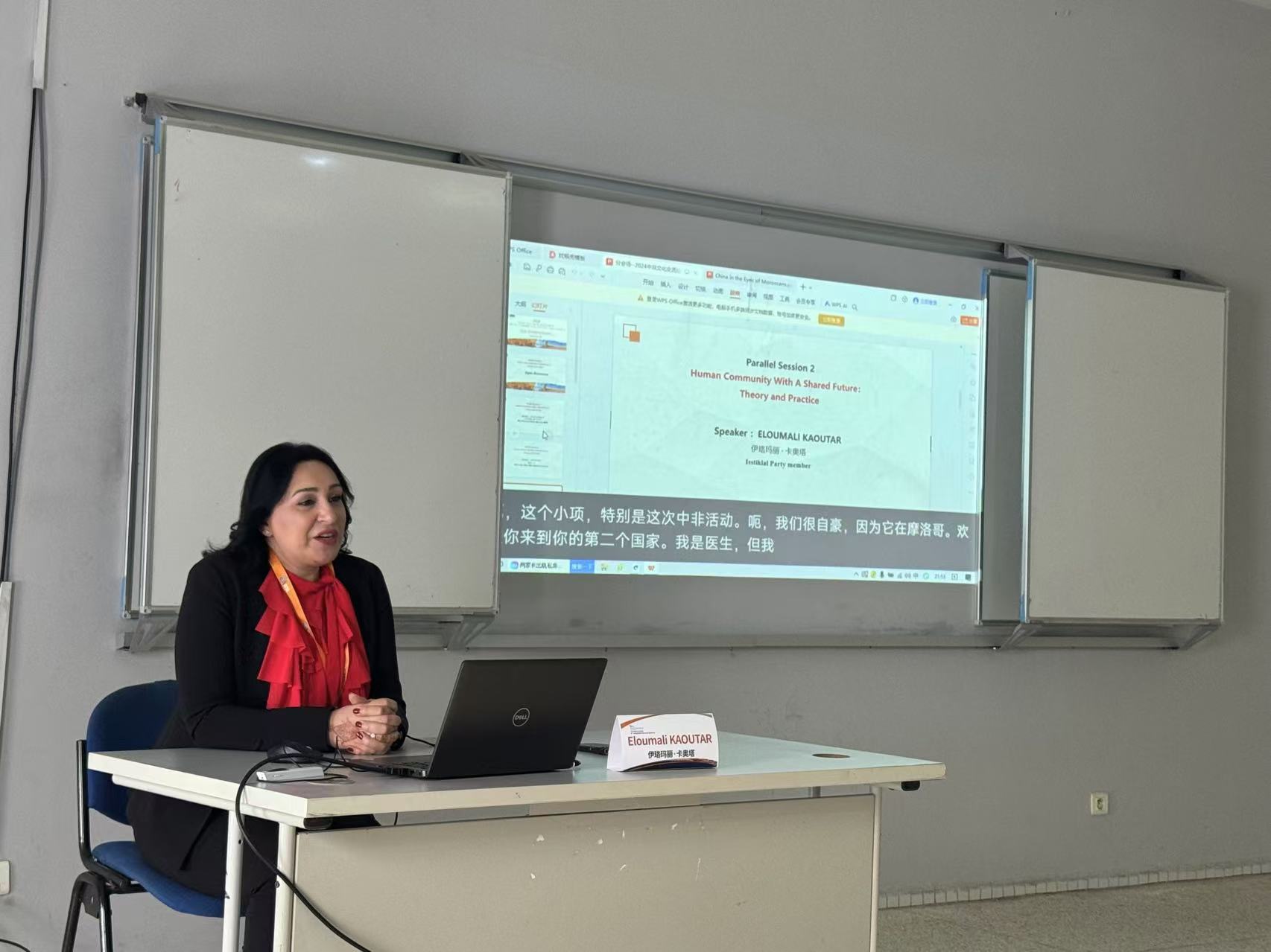 (摩洛哥独立党成员伊珞玛丽·卡奥塔发言) 摩洛哥独立党(Istiqlal Party)成员伊珞玛丽·卡奥塔(Eloumali KAOUTAR)对本次中非论坛的举办感到高兴和自豪,她表示中非合作,尤其是摩中双方的进一步交流合作刻不容缓,当下世界变化迅速,这也正是深入推动摩中合作的重要时期。中国摸索和创造出了具有中国特色的发展模式,这也能够为摩洛哥的发展提供更多的启发。摩洛哥地处连接地中海和大西洋、欧洲和非洲的“十字路口”,是经济和地缘政治新关系的大门,摩洛哥与中国的伙伴关系正在呈现新的维度,我们共同来到摩洛哥举办会议就是为了合作共赢。