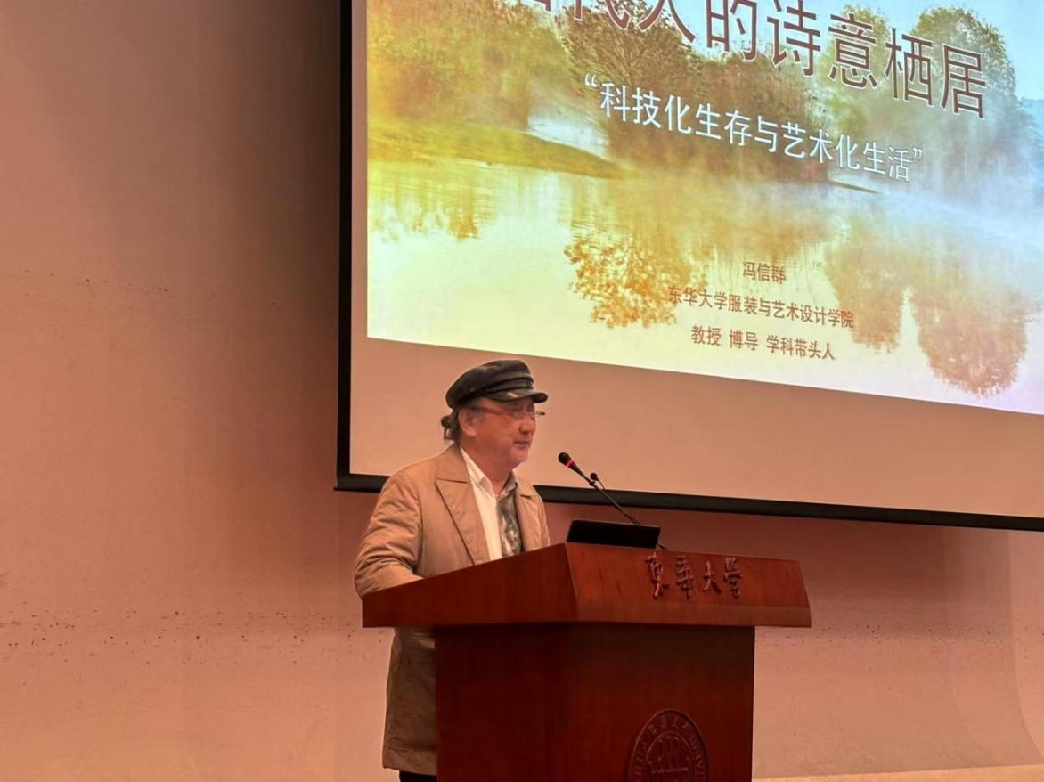 我们会在仰望闪烁霓虹时追忆年幼星空的净澈与美好,也会在身处高楼大厦间怀恋农家小院的生动与温暖,不禁自问何处是精神故乡?当今工业化的高度发展、科技进步的突飞猛进确实为我们的生活带来了诸多便利的同时,又隐匿着另一种忧虑——人本身生存状态的同质化、模式化问题。12月5日,服装与艺术设计公司博士生导师、学科带头人,全国艺术专业学位研究生教育指导委员会委员冯信群教授以“当代人的诗意栖居:科技化生存与艺术化生活”为题主讲《锦绣中国》,将他的亲身体验和学术研究作为“原料”,向同学们深入讲述对于科技与艺术问题的思考。